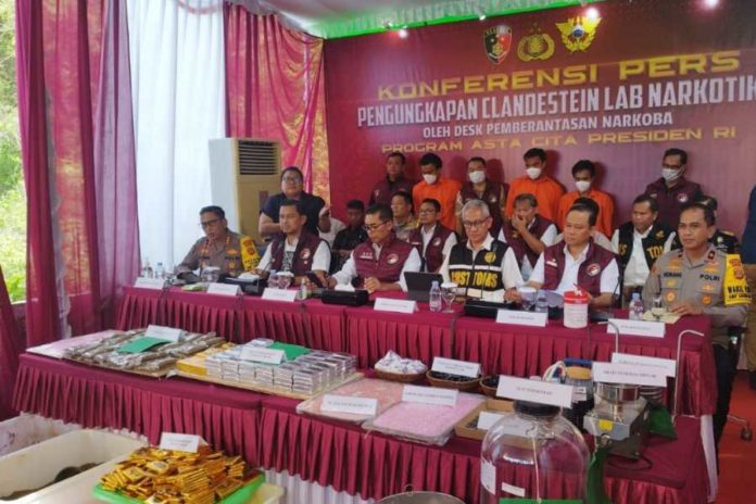 At the Uluwatu crime scene, police uncovered laboratory equipment and raw materials waiting to be processed into finished narcotics for eventual sale.