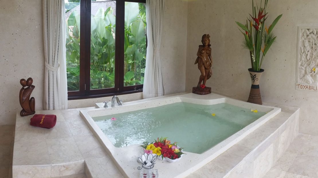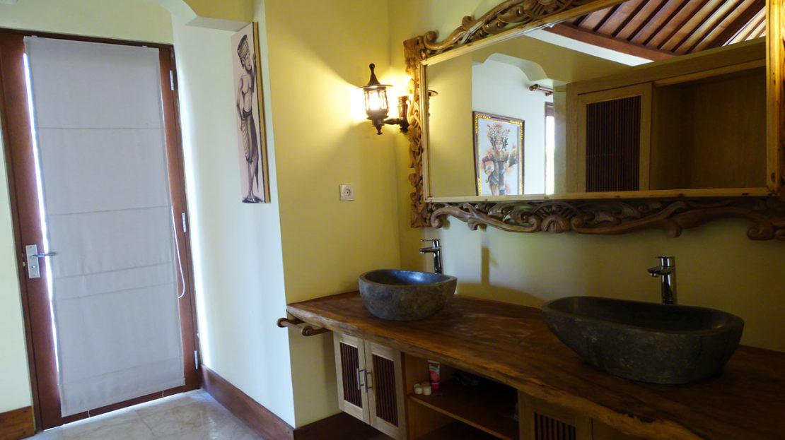 There is an oval-shaped infinity pool with an additional children’s section and a large sun deck directly in front of the ocean, offering breathtaking views of the Bali Sea and Bali’s north-east coast.