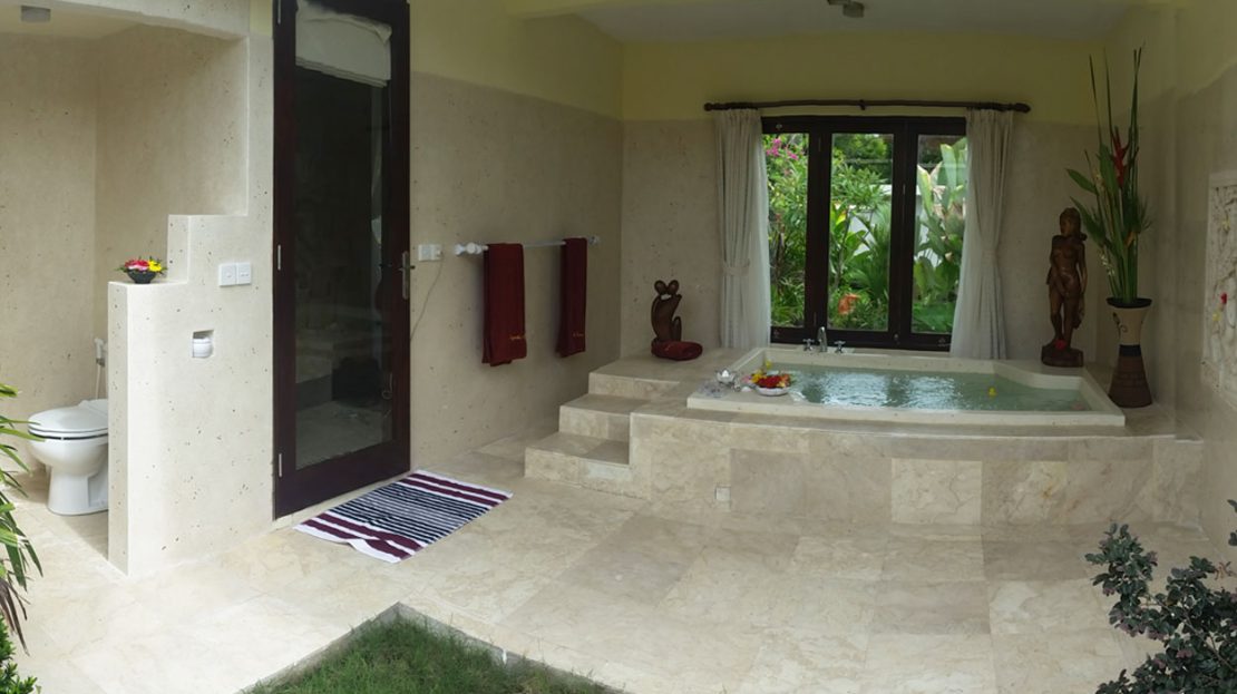 Semua kamar tidur bungalow dilengkapi dengan AC dan tempat tidur king size yang nyaman. Kamar mandi en-suite memiliki bilik lemari, 2 wastafel, shower & unit pusaran air.