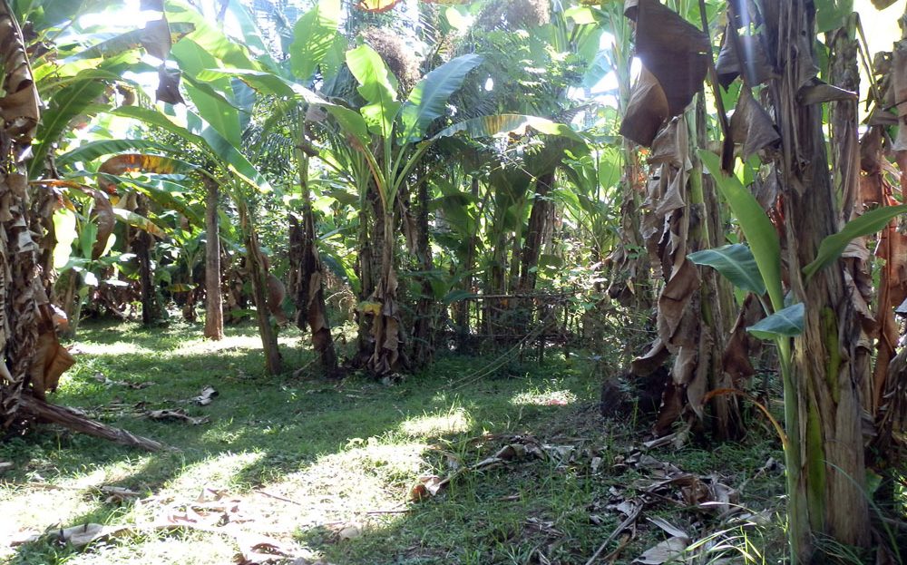 Currently covered with banana trees. Only 100 meter of main road. 7,6 are (760 m2). Access road currently natural track road.