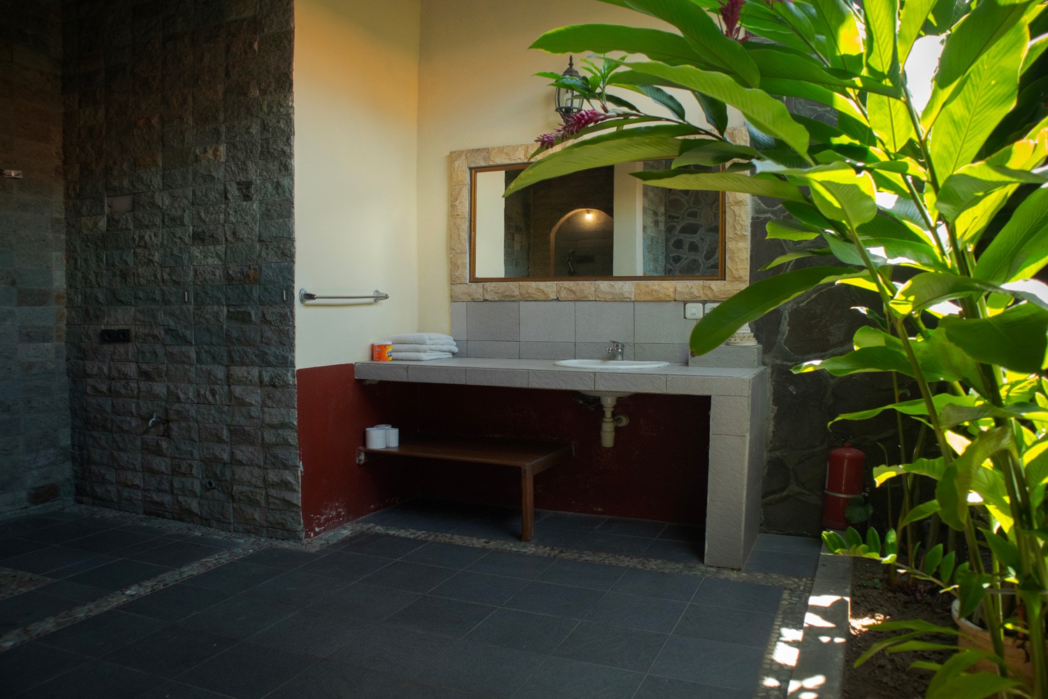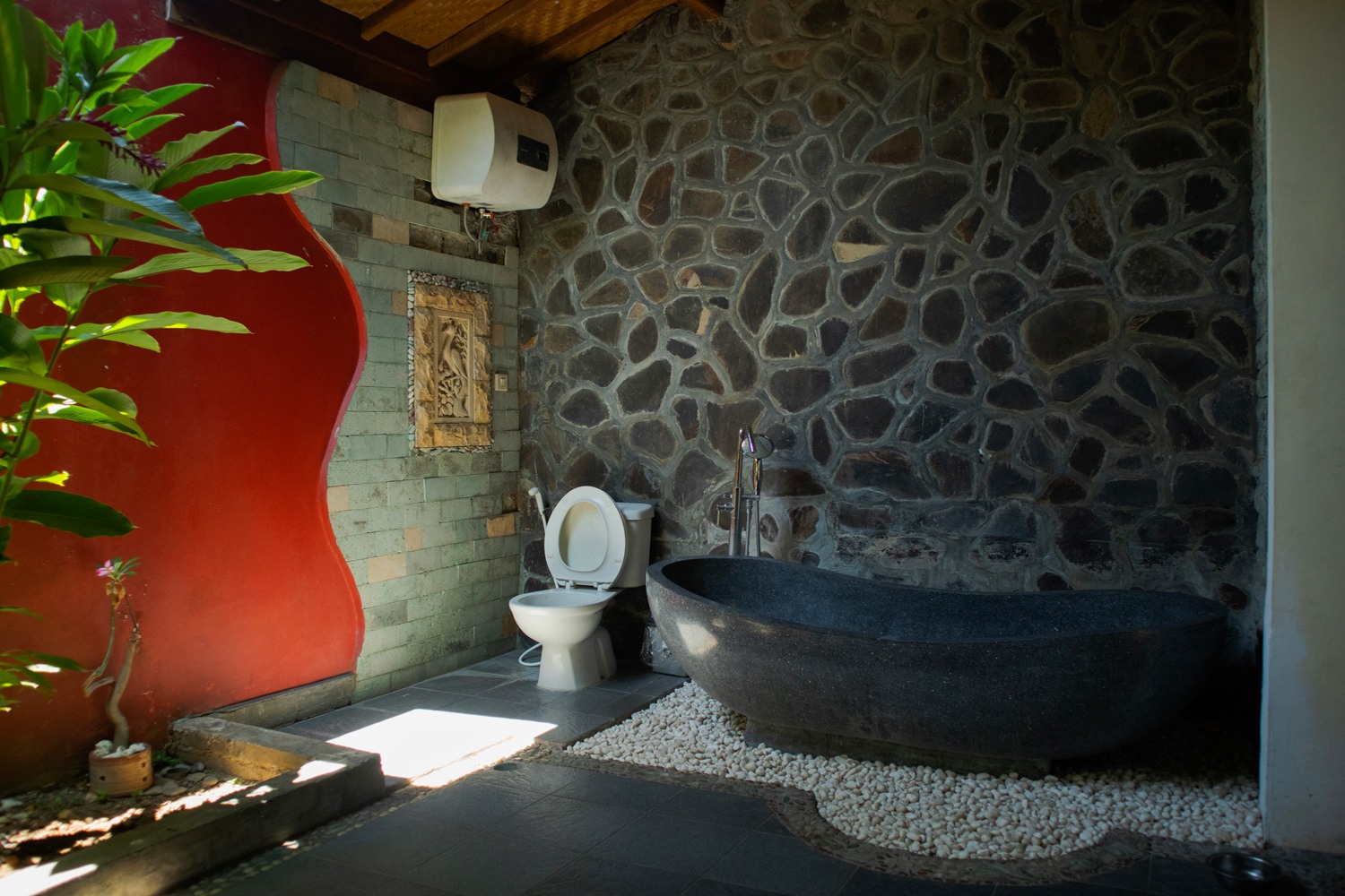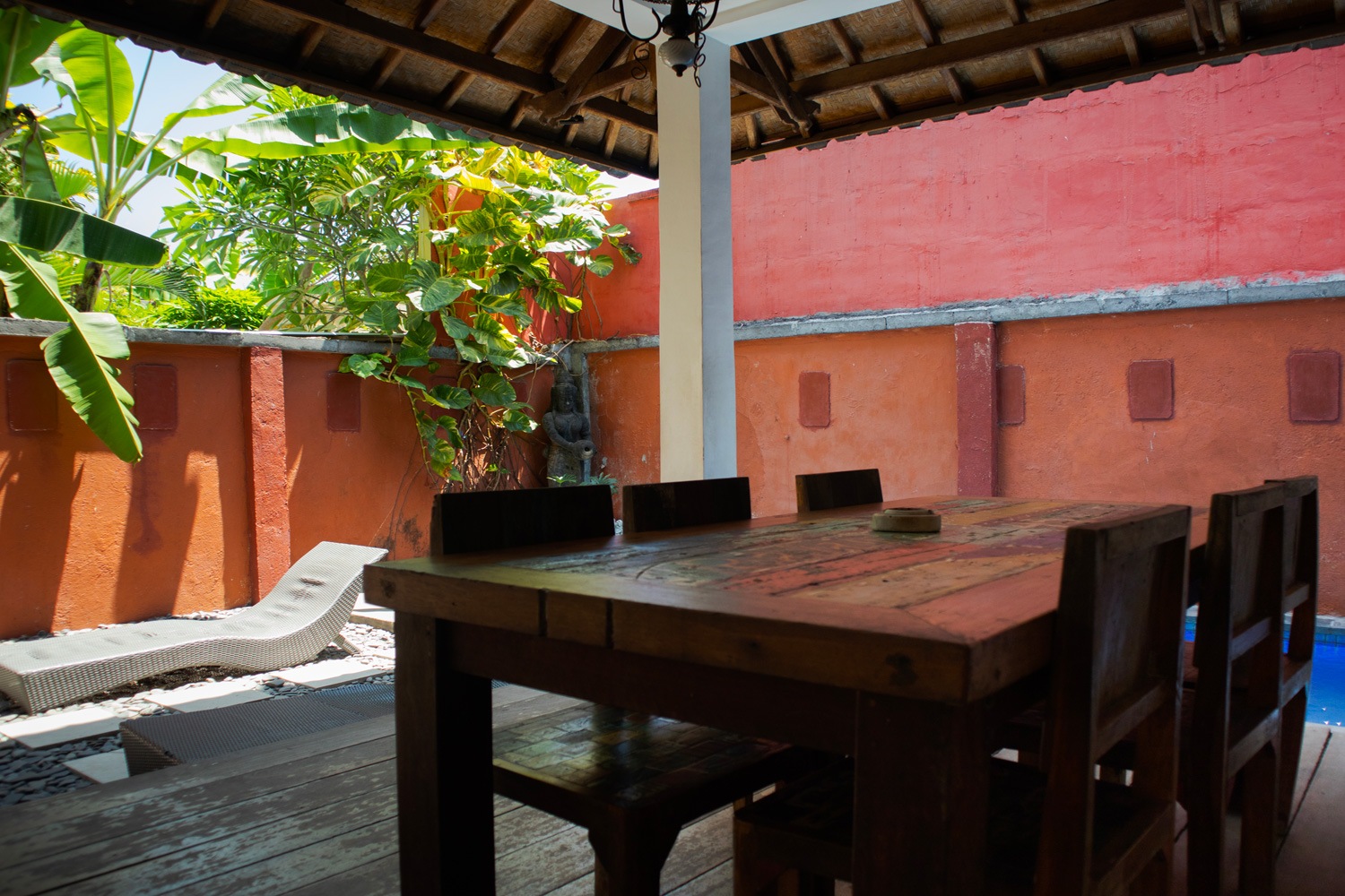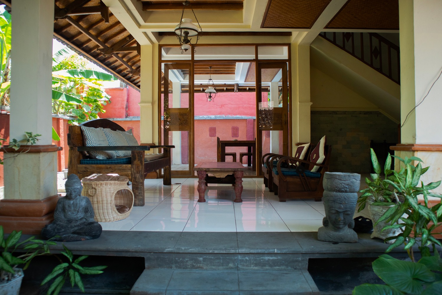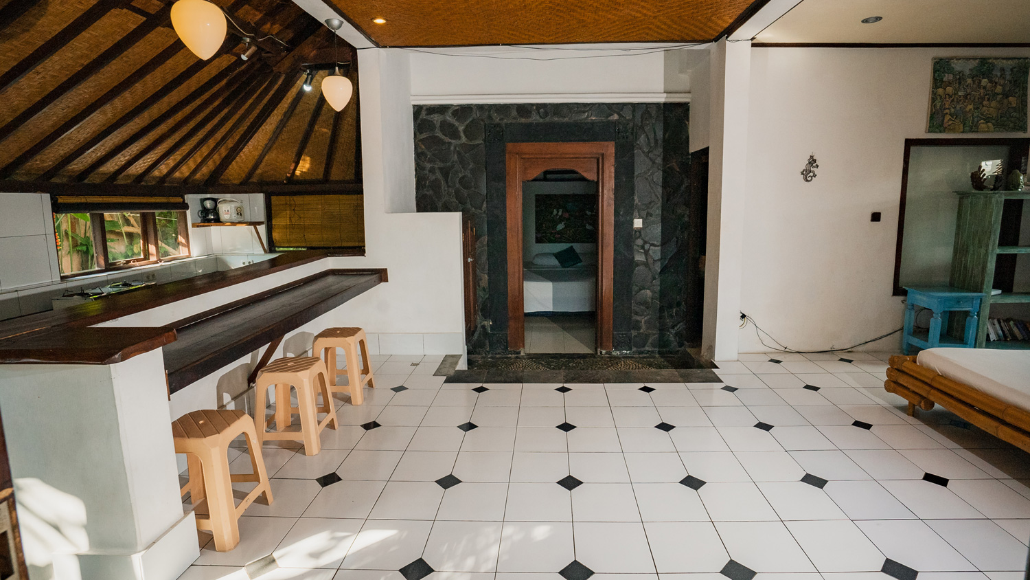 Situated on a sprawling freehold land measuring 550 m² this Bali Lovina Beach Villas for sale boasts an inviting entrance adorned with a covered parking area suitable for a large car and motorbikes. It offers two distinct entrances leading to two villas.