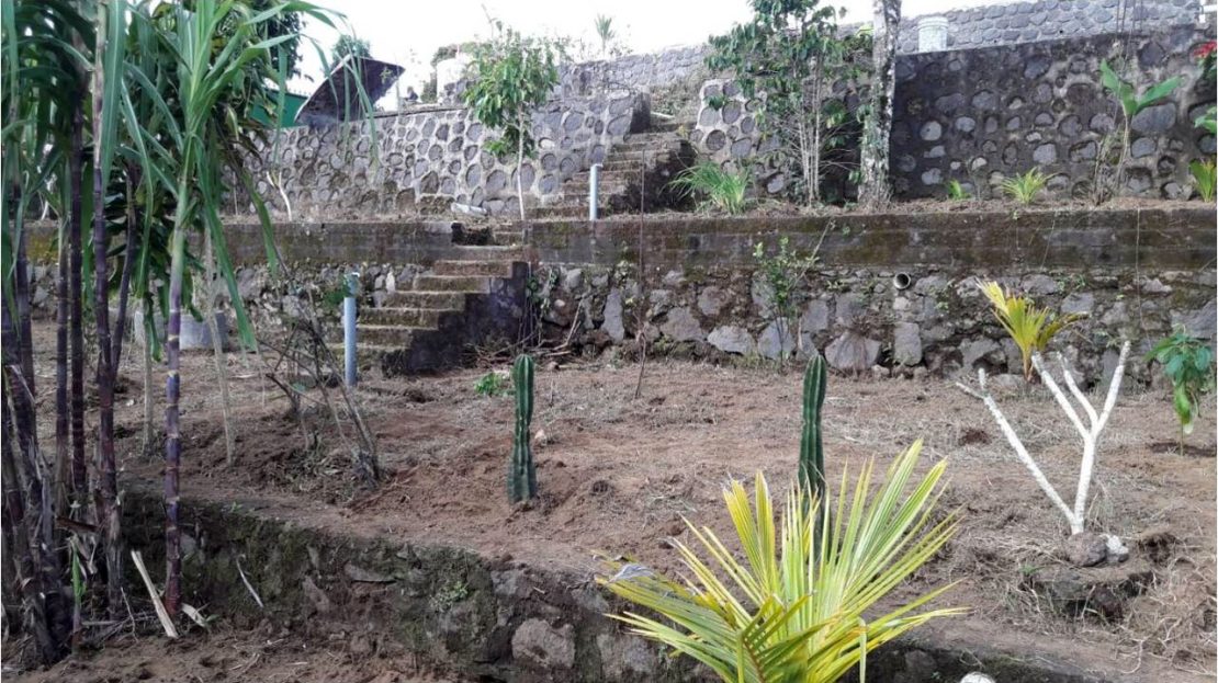 The lower sloping 4 are part of land is already landscaped in terraces. Separated with stone walls and connected via staircases. Each terrace has its own water supply as we have created gardens there.