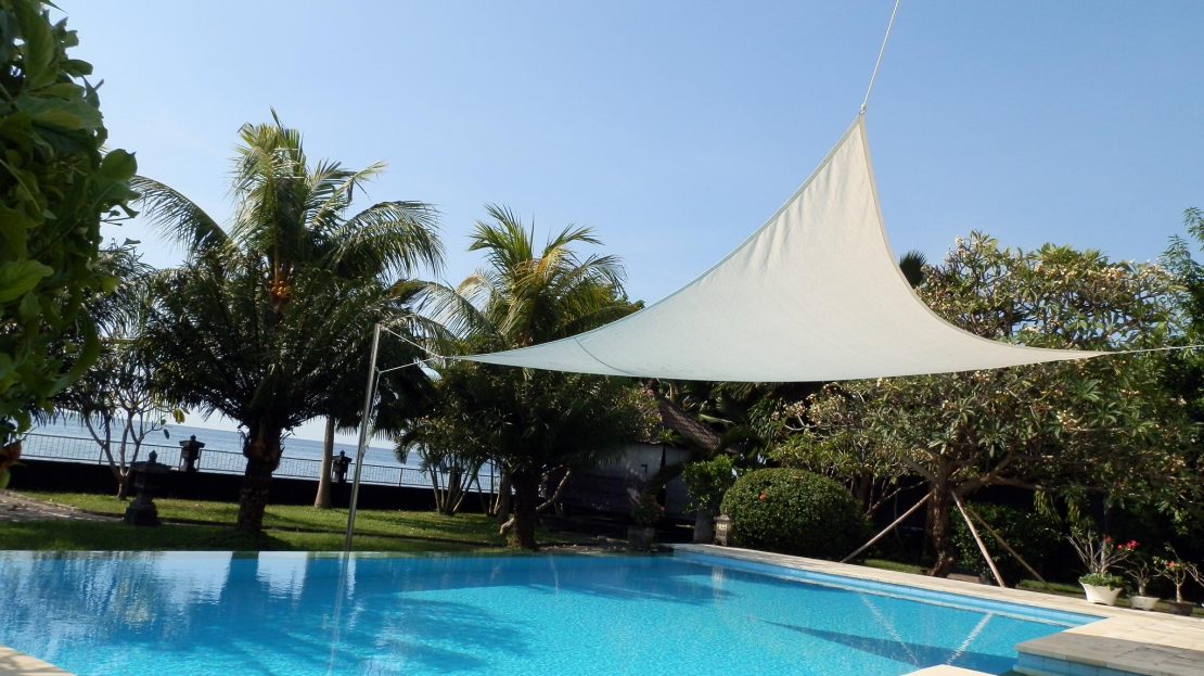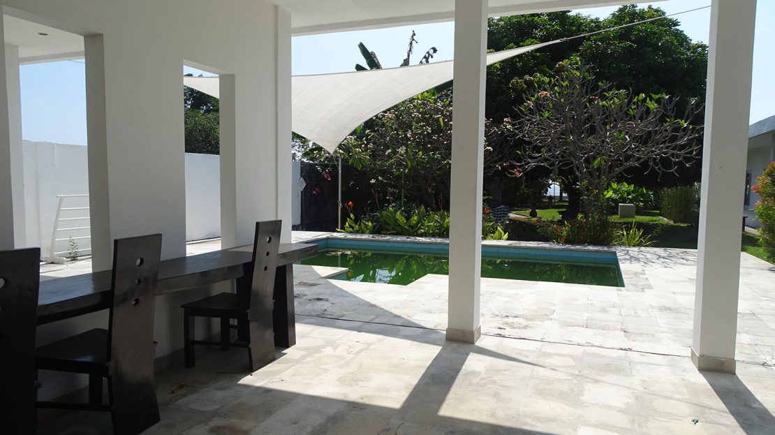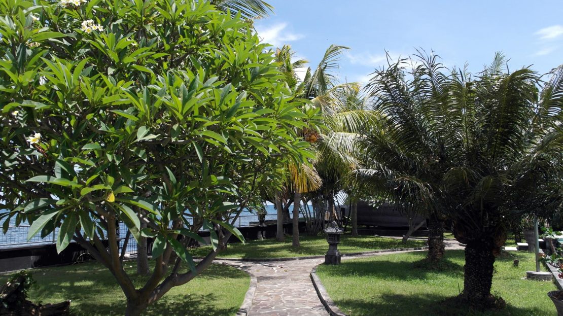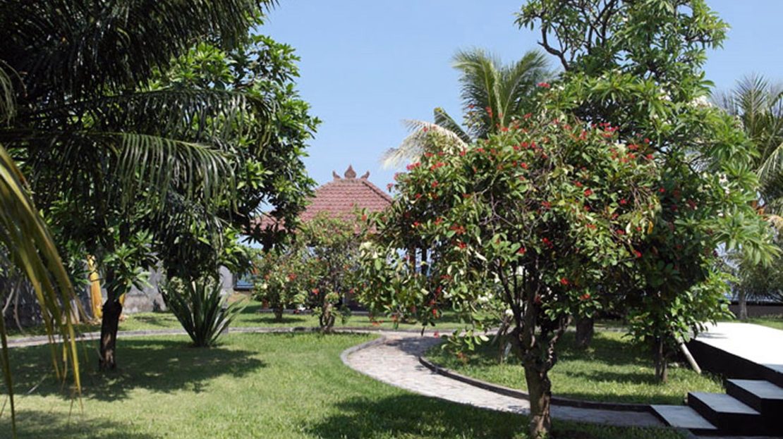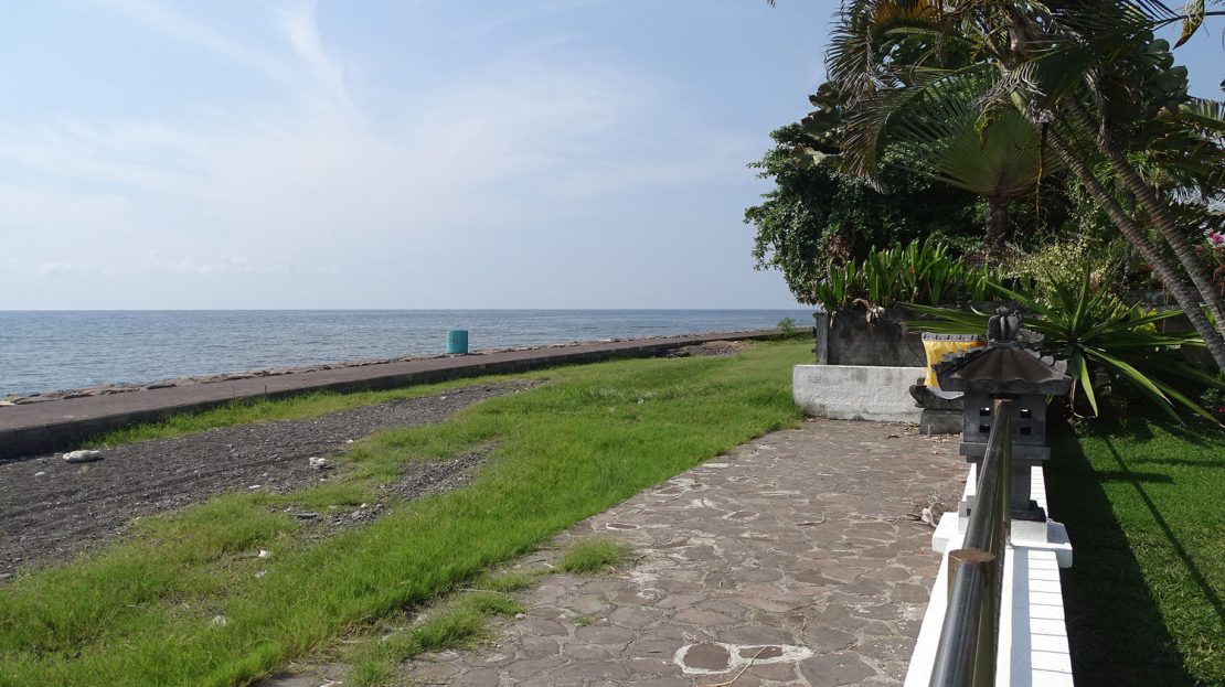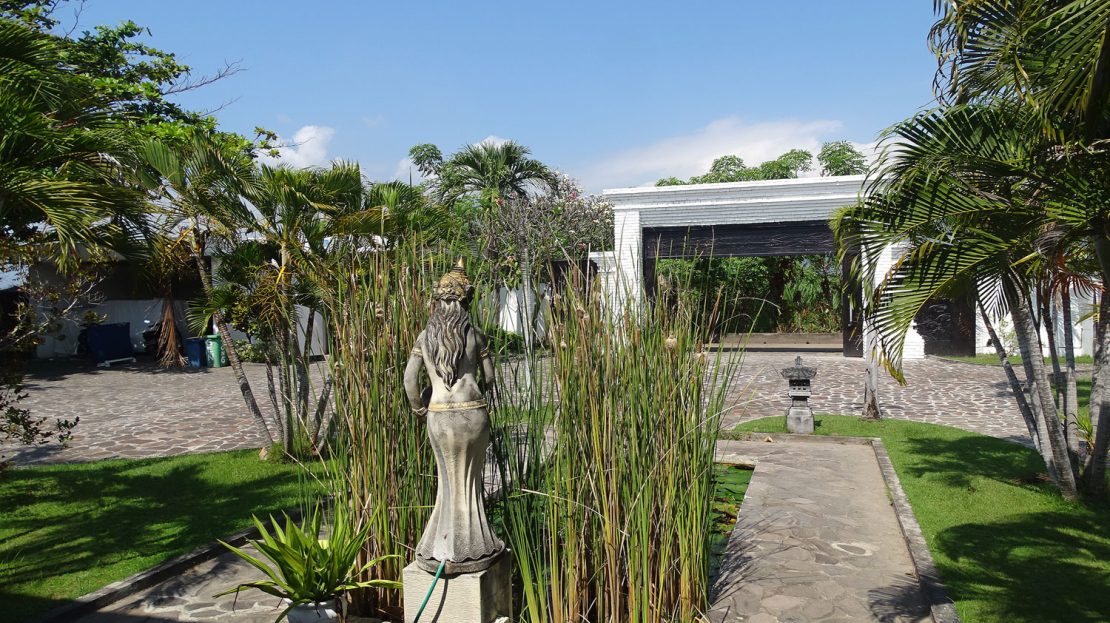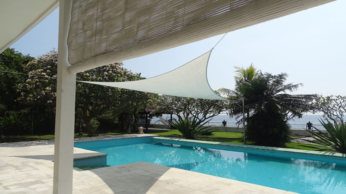 The Bali seaside villa for sale is settled in a large well kept garden with its own private access to the seafront area, a seafront Bale, jet ski port and fish ponds, with spectacular ocean and North Bali coast line view. The entire property is walled-in and gated by a large wooden carved sliding gate.