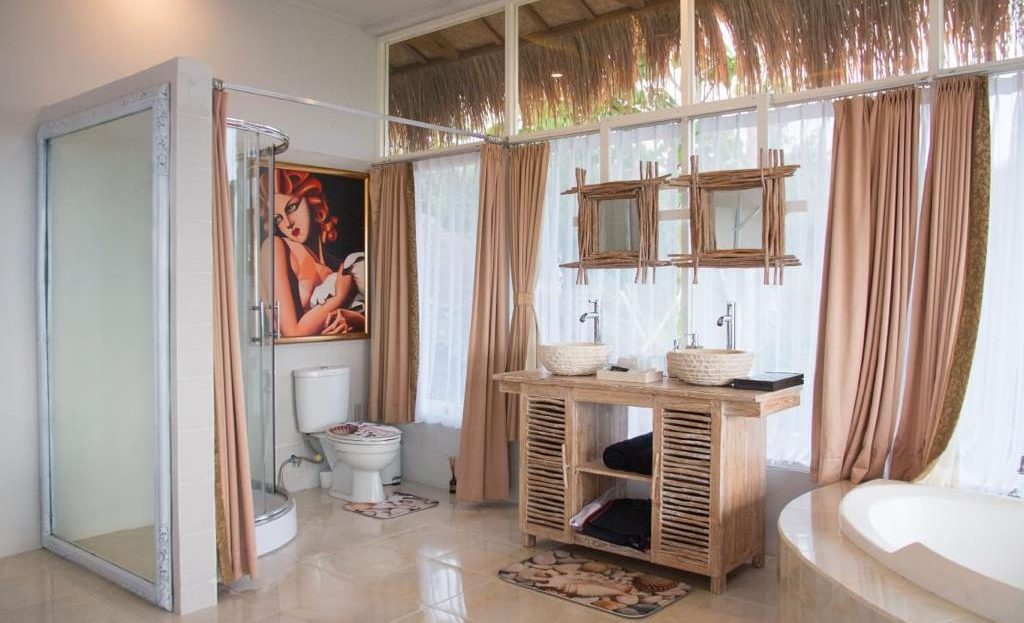 This property is located 5 km uphill of the Lovina Village Temukus in an area called Cempaga. The cottage was built in 2020 with a flat concrete roof. The balcony is covered with traditional a “Alang-Alang” roof and provides a spectacular view towards the North Bali coast and ocean.