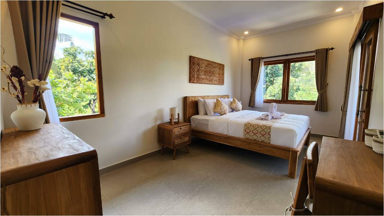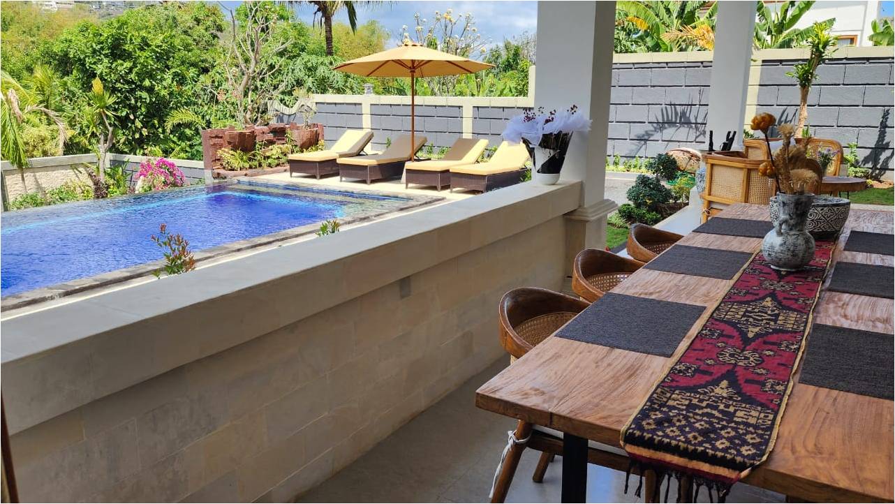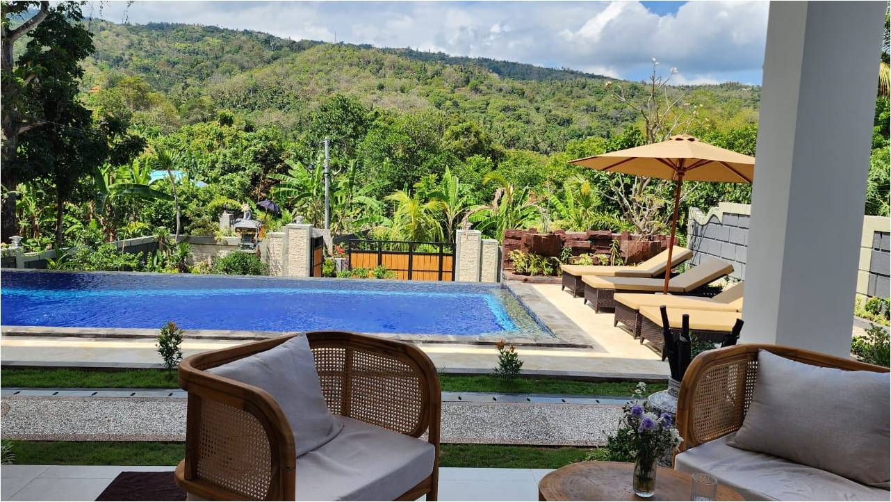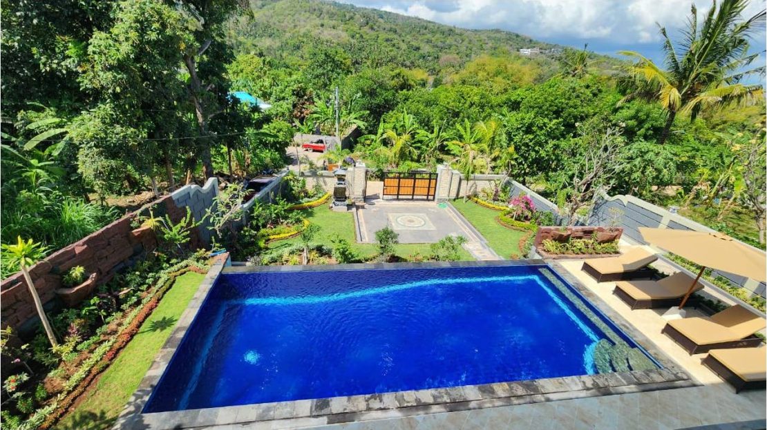 Lovina Hillside Freehold Villa: an exceptional villa with spectacular mountain and ocean views. The property features four bedrooms and three bathrooms, all of which are air conditioned.