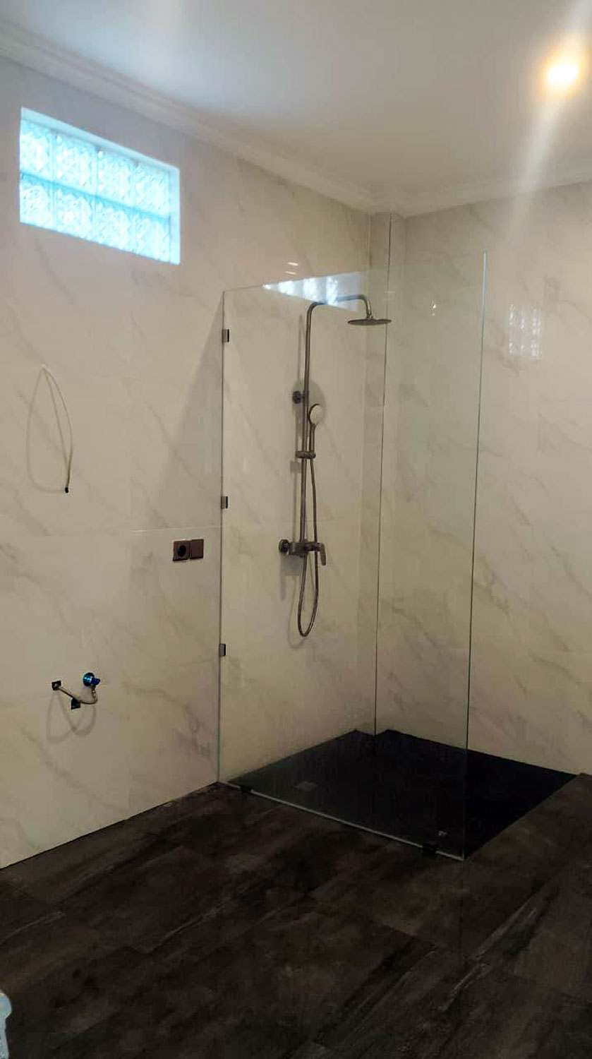 This multilevel property features three bedrooms and three bathrooms, all of which are air-conditioned. It also has a carport, a 43 m² private swimming pool with an outdoor shower unit, a fish pond, and a small garden. There is an extra building on the ground.