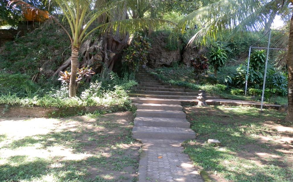 The North Bali ocean view property is gated and fenced. On entering the property through the gate, there is a large flat area of land (approx. 5 acres/500 m²). A wide stone staircase cut through the rock leads down to the beautiful main area with large mango trees and existing structures.