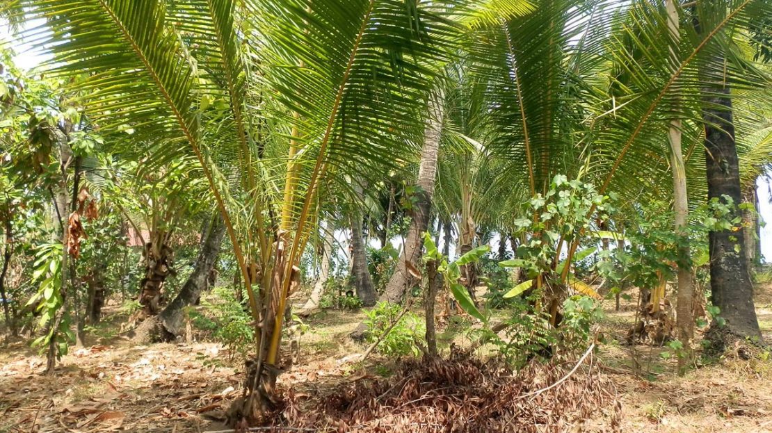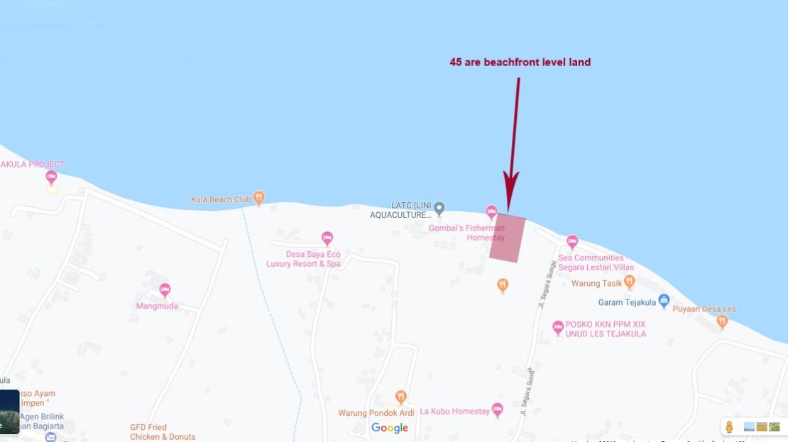 45 are (4500 m²), level rural beachfront land covered by various trees (mainly coconut, palms & banana), rectangular shape