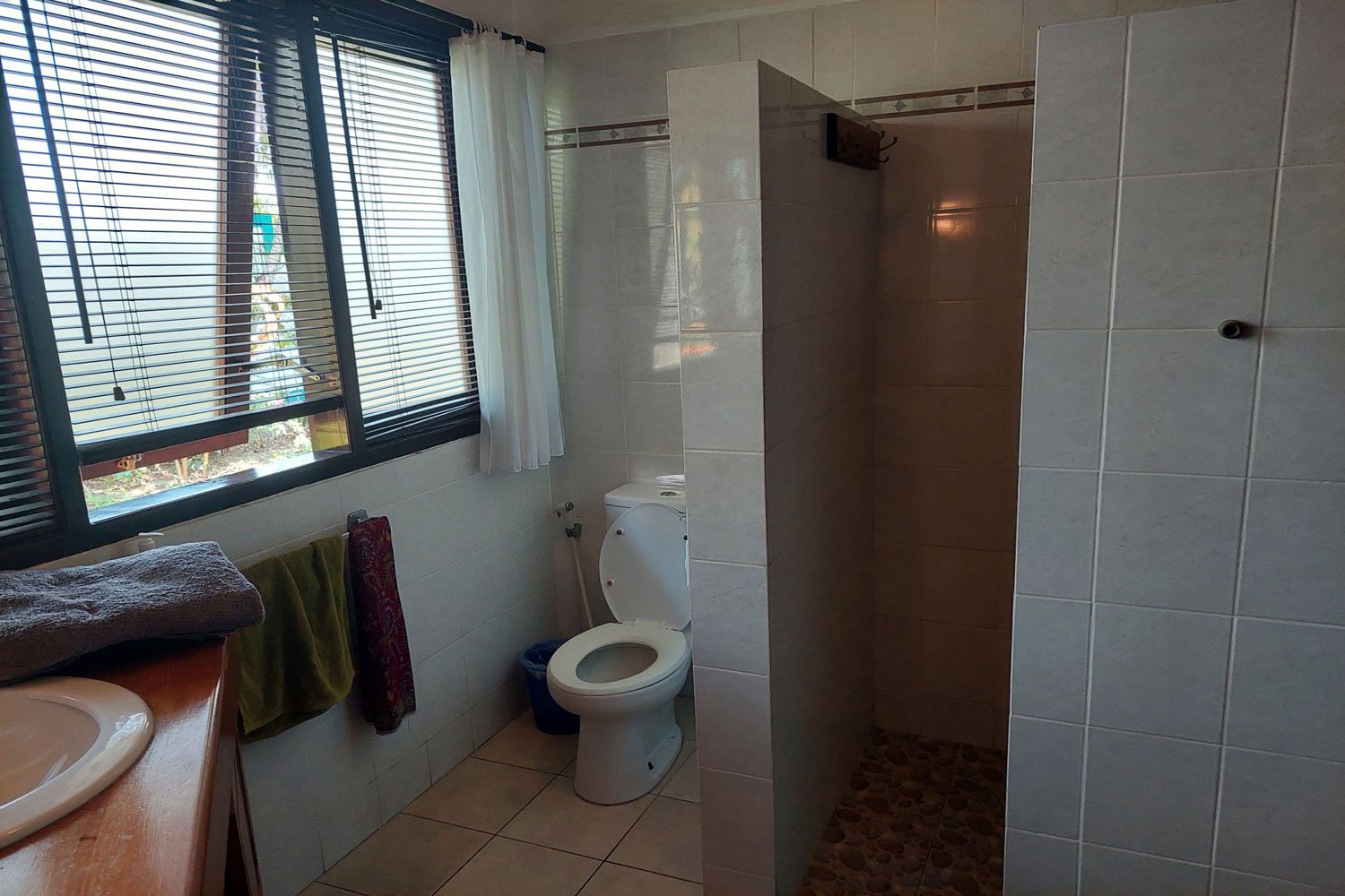 The cottage building is beautifully set in the front yard of the property, immersed in the lush tropical garden, and offers an additional bedroom with king-size bed & shower unit, and a spacious terrace with loungers.